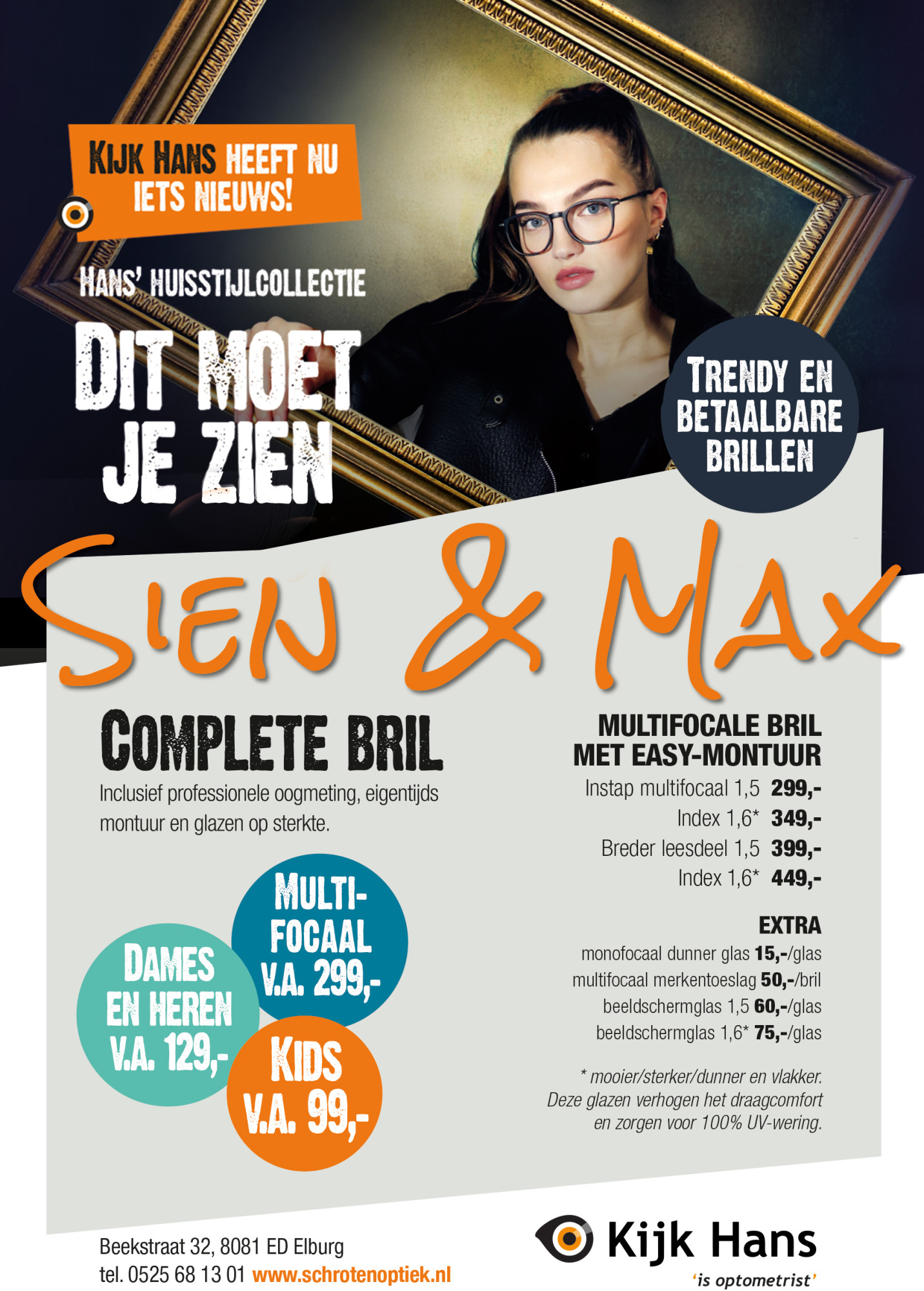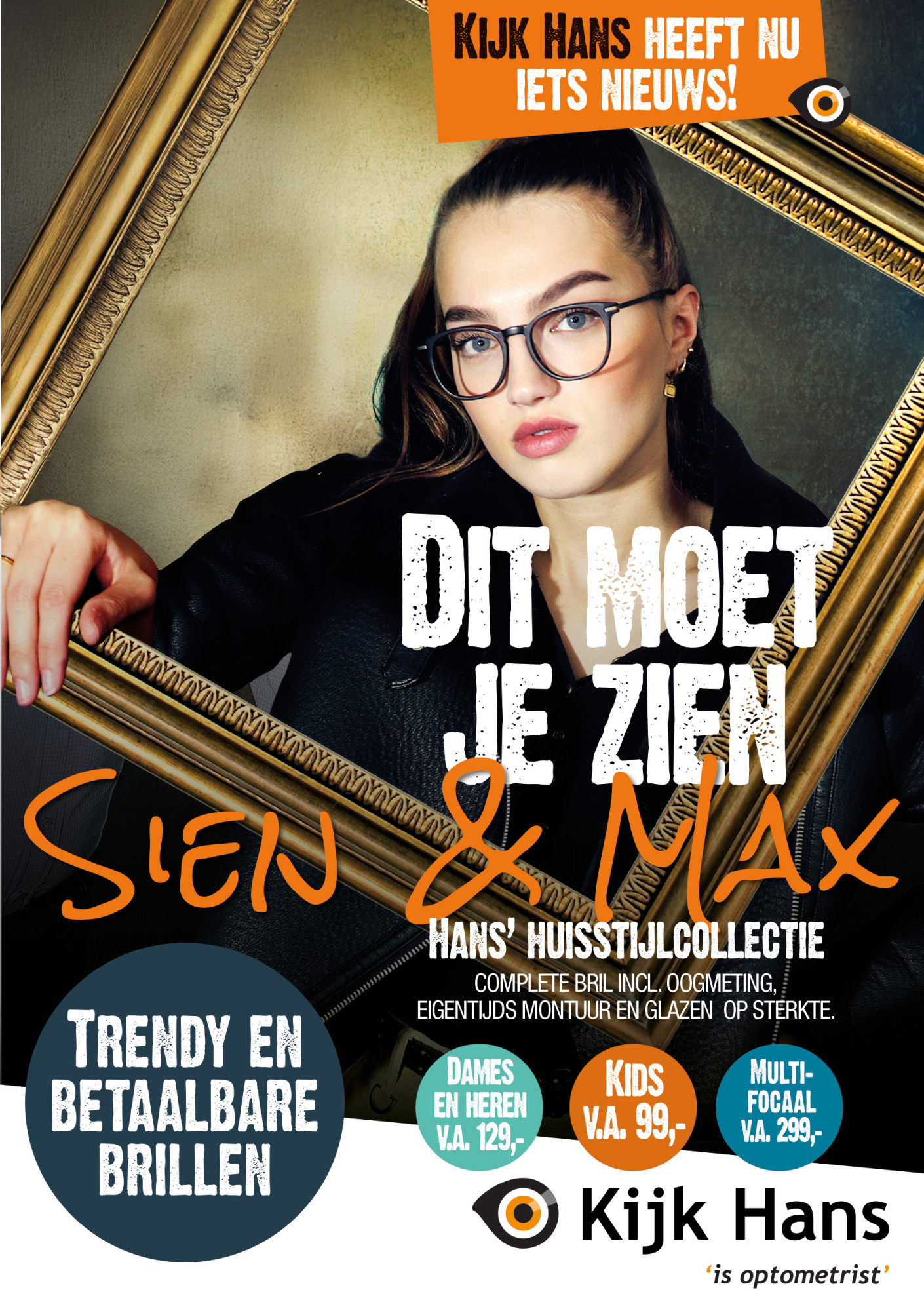 Een huisstijl bril betekent gelukkig niet dat u er bekaaid vanaf komt. Sien en Max is een eigen merk van Kijk Hans en zodoende kunt u profiteren van onze deskundige zorg en adviezen.
